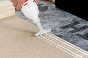 The surface nozzle ensures an even application of adhesive over a width of 15 mm to 60 mm.