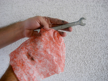 Remove the damp cloth from the re-sealable container and remove dirt by gently rubbing the surface affected.